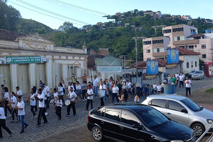 O momento culminante do evento foi o desfile pelas ruas de nossa Miradouro ao som dos metais da Corporação Musical José Ferreira de Faria Lemos, levando alegria e muita emoção aos miradourenses.