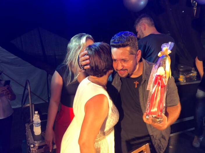 Logo após, mais emoção. O Cantor católico Thiago Brado subiu ao palco cantando os maiores louvores de sua carreira.