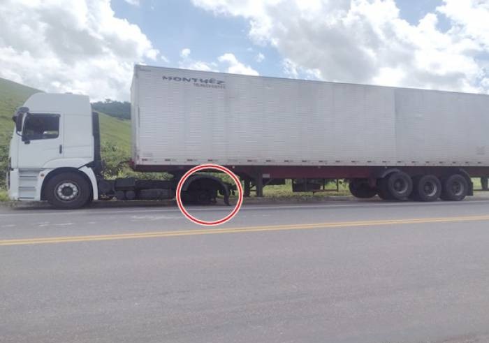 Milagre: Eixo de carreta se desprende e atinge automóvel na BR 116, na altura do Barreiro; ninguém ficou ferido.