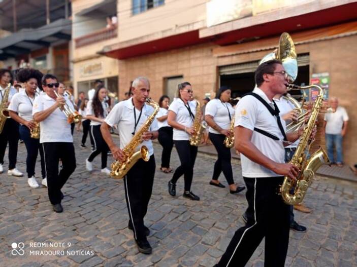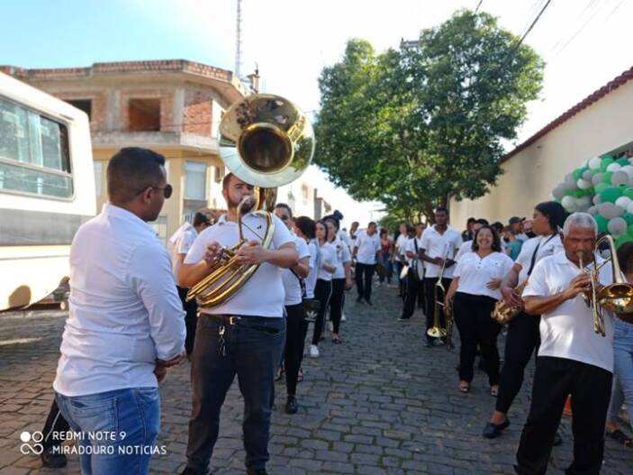 O momento culminante do evento foi o desfile pelas ruas de nossa Miradouro ao som dos metais da Corporação Musical José Ferreira de Faria Lemos, levando alegria e muita emoção aos miradourenses.