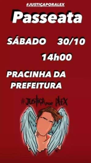 Caso Alex Paz: Passeata e manifestação “Justiça Por Alex” na tarde deste sábado (30-10) em Muriaé.