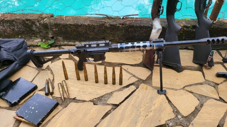 Durante as duas abordagens, foram recuperados, explosivos , armas longas ponto 50 e 10 fuzis, além de outras armas, munições, granadas, coletes, miguelitos e 10 veículos roubados.