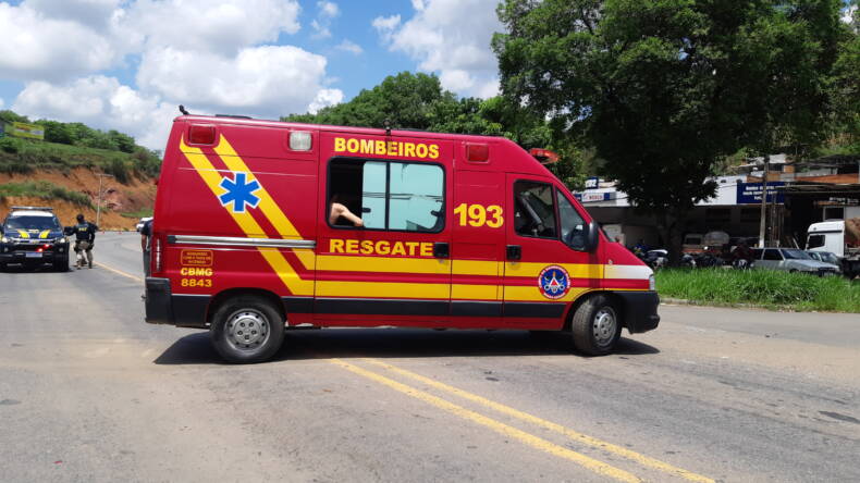 Colisão entre moto e carro deixa mulher ferida na BR 116 na entrada do bairro Gaspar em Muriaé.