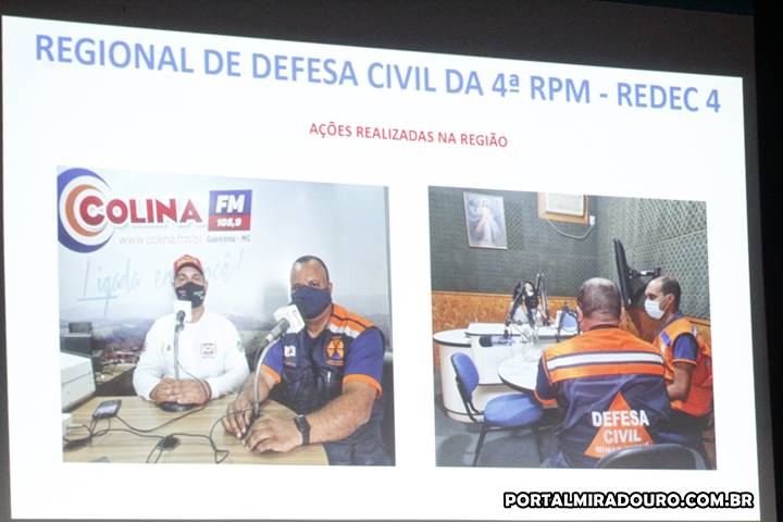 Durante as atividades, a atuação da Coordenação de Defesa Civil do Município de Miradouro foi citada como exemplo de iniciativas imprescindíveis em termos de planejamento e de serviços preventivos neste período de contingências que antecedem o grande volume de chuvas previsto para os próximos meses.