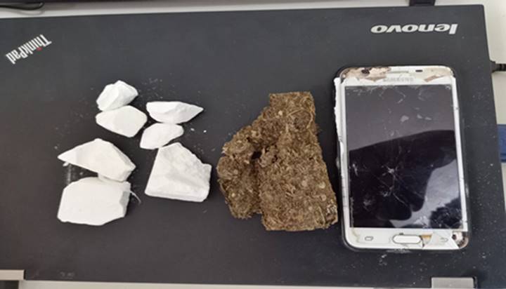 Durante o cumprimento das medidas cautelares também restaram arrecadados 10 (dez) pinos de cocaína com o adolescente L.F.A.F.S, o qual fora conduzido à Delegacia de Polícia e liberado ao seu respectivo responsável após prestar informações acerca de seu envolvimento com o tráfico de drogas.