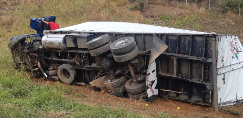 Um acidente foi registrado na manhã deste domingo (15-08) na BR 116, próximo de Miradouro, envolvendo um caminhão carregado de maracujá. Nossa reportagem esteve no local e conversou com motorista que seguia do estado da Bahia para a cidade do Rio de Janeiro, quando perdeu o controle do caminhão, que estava carregado de maracujá, depois do pneu estourar. A Polícia Rodoviária Federal esteve no local e registrou o acidente, o condutor do caminhão sofreu ferimentos leves.