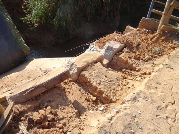 PONTE NÃO SUPORTA PESO DE CAMINHÃO E DESABA NA REGIÃO DO RIO PRETO. ACESSO MURIAÉ-USINA ESTÁ INTERDITADO