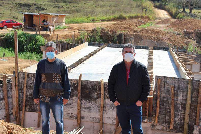 O Prefeito de Miradouro, Cloves Botelho e o Vice-Prefeito, Rogério Valentim, visitaram na tarde desta quarta-feira, 7 de julho, as obras de construção da Ponte José da Silva Barros, na comunidade rural do Córrego dos Gomes. A antiga ponte estava interditada há anos. Desde então, enchentes após enchentes, pessoas e veículos trafegavam no local sobre pontes provisórias construídas de madeira.