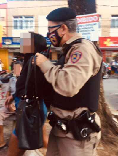 Em seguida outros policiais foram averiguar a informação de que uma mulher estaria fugindo rumo a Praça João Pinheiro. A suspeita foi alcançada e detida. Em sua bolsa estava uma faca. Foi notado também, que a arma de fogo não estava na bolsa, mas ao ser colocada na cela da viatura, novamente passou por busca e debaixo de suas blusa de frio, na altura do sutiã, estava a arma de fogo: um revólver calibre 38 com três cartuchos deflagrado e três intactos.