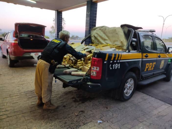 Bom Despacho (MG) – A Polícia Rodoviária Federal (PRF) apreendeu, na tarde de hoje (17/06), aproximadamente 493 quilos de maconha, sendo transportados em um Fiat Siena com placas de São Paulo. A apreensão ocorreu durante fiscalização de combate ao crime no km 476 da BR 262 em Bom Despacho (MG).