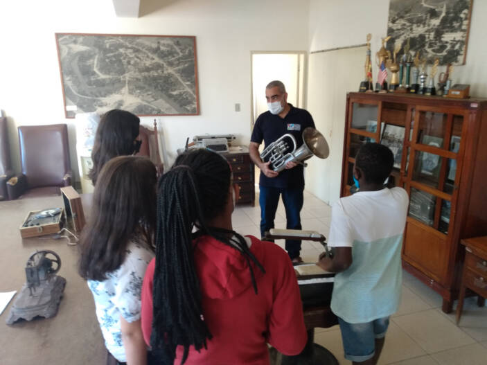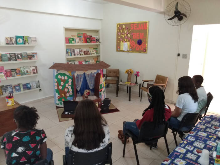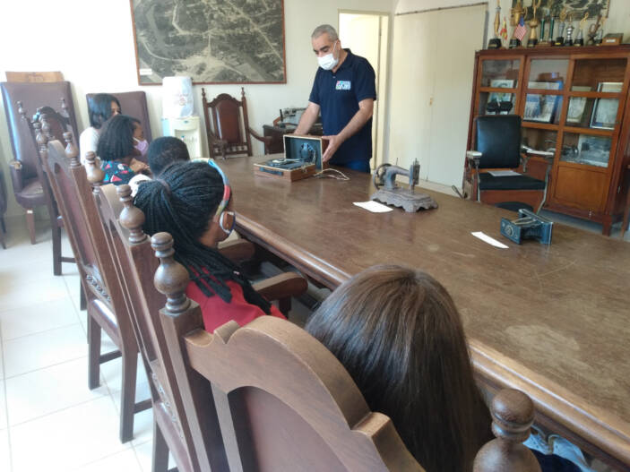 Cinco adolescentes acolhidos no Abrigo Institucional para Crianças e Adolescentes Cantinho Acolhedor, participaram nesta quarta-feira, 12 de maio, da Ação da Educação para o Patrimônio, promovida pela Secretaria de Cultura e Turismo e pela Secretaria de Assistência Social. Durante a Ação, logo após tomarem o café da manhã, os adolescentes conheceram o acervo do Museu e do Arquivo Histórico Municipal. Em seguida, participaram de forma dialógica de palestra e teatro de fantoches sobre quatro Bens Patrimoniais Municipais Inventariados, a “Cadeira de Barbeiro”, a “Máquina de Costura”, a “Máquina Fotográfica” e a “Vitrola”. As atividades foram coordenadas pelo Coordenador de Museu e Arquivo Histórico Municipal, Nicélio Barros, e pela Coordenadora da Biblioteca Municipal Cel. Izalino Romualdo da Silva, Ana Lúcia Alves de Paiva.