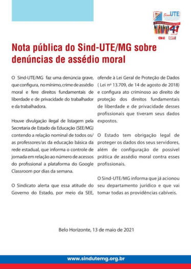 O Sind-UTE/MG informa que já acionou seu departamento jurídico e que vai tomar todas as providências cabíveis.