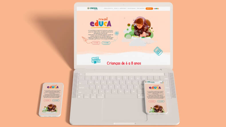 Voltado para o aprendizado das crianças sobre a importância de uma relação equilibrada com o dinheiro ainda na primeira infância, o Cresol Educa tem conteúdos para crianças de 6 a 12 anos. No portal estão disponíveis uma série de histórias, atividades e livros sobre educação financeira divididos por faixa etária e com personagens diferentes de acordo com as etapas da infância.