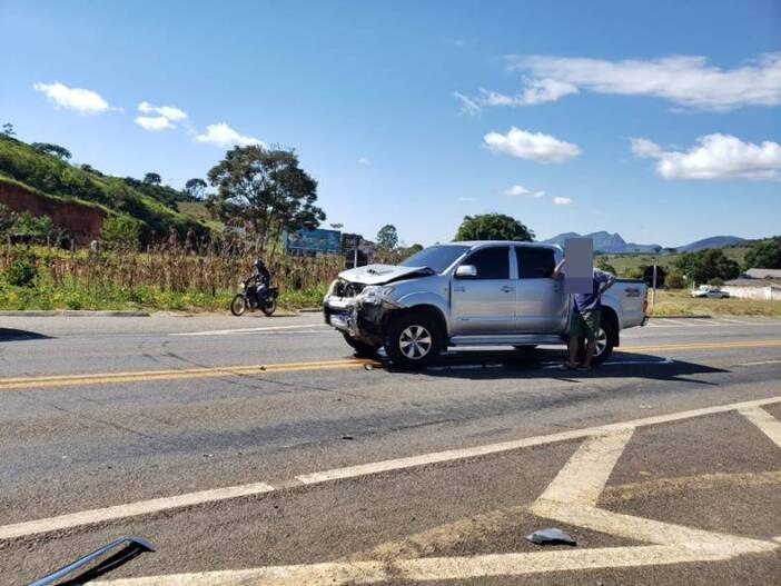 Um grave acidente foi registrado na manhã desta sexta-feira (07-05) na BR 116, no trevo de Divino, envolvendo uma caminhonete Hilux e uma motocicleta CB 300. Segundo informações do Jornal O Impacto Publicidade de Divino, o motorista relatou que ao passar pelo trevo de Divino, se deparou com a motocicleta que invadiu a pista e bateu contra seu veículo. A condutora da motocicleta ficou presa por cima do capô do veículo sendo carregada por cerda de 100 metros. Uma ambulância de Divino esteve no local e socorreu a vítima para os primeiros socorros, em seguida a vítima foi encaminhada pelo SAMU para o Hospital Casa de Caridade de Carangola. A vítima identificada como Claudianeia sofreu traumatismo craniano e segue em estado grave. O condutor do veículo não se feriu. A PRF foi acionada para os trabalhos de praxe.