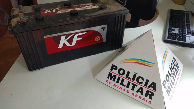 Ainda no interior do veículo abordado foi achada uma bateria de caminhão, da qual não foi declarada a procedência.