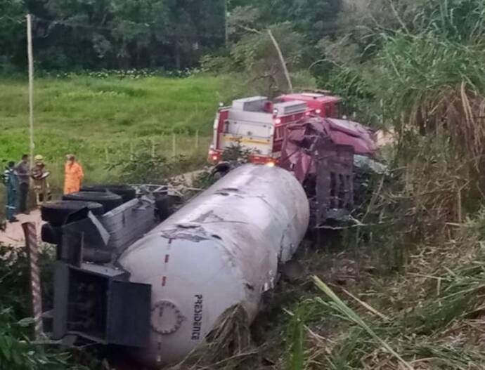 Segundo o Corpo de Bombeiros, a carreta seguia sentido Juiz de Fora quando o motorista perdeu o controle da direção e o veículo capotou, parando às margens daquela estrada vicinal.