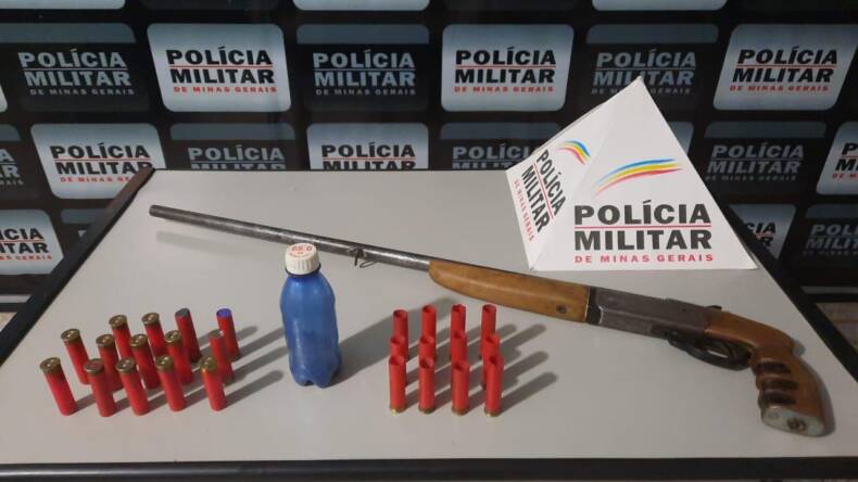 A Polícia Militar de Divino após receber denúncia anônima que um homem estava praticando caça de animais na zona rural de Divino, local conhecido como Córrego Manso. De imediato os militares realizaram a diligência até o local e fizeram contato com o denunciado e constataram a posse ilegal de uma espingarda calibre. 36 além de 14 cartuchos intactos e 12 vazios