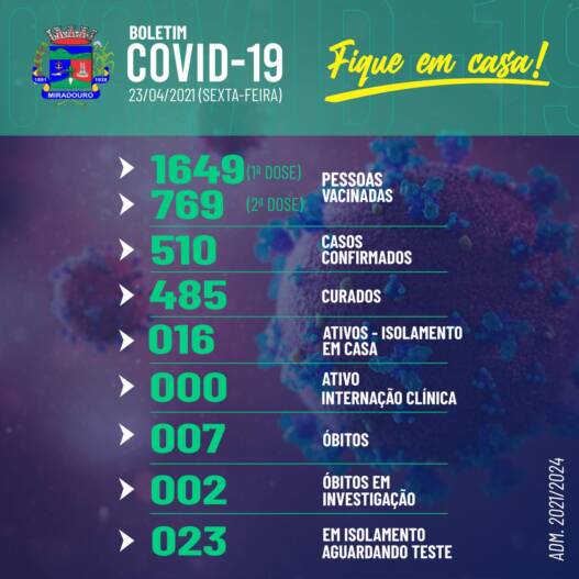 Confira abaixo o boletim epidemiológico, desta sexta-feira (23/04/2021).