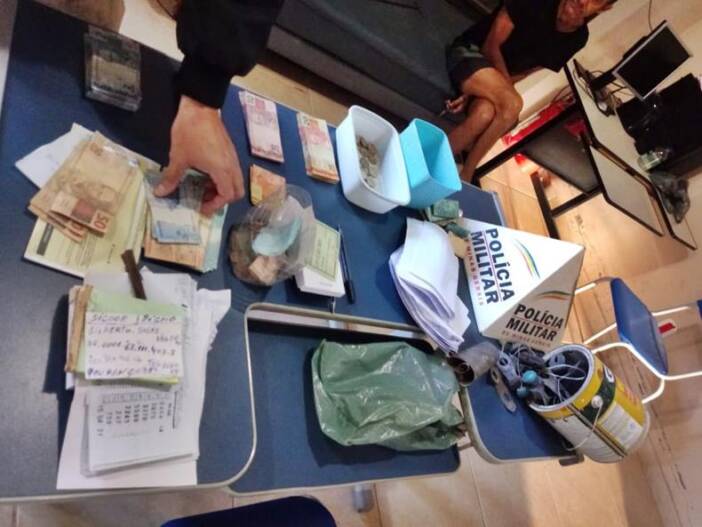 Material: 05 buchas de maconha – 05 papelotes de cocaína – R$ 65,00 em moeda corrente – 01 ceda