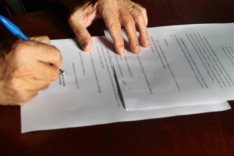 Prefeito Cloves Botelho assinando o Decreto Municipal