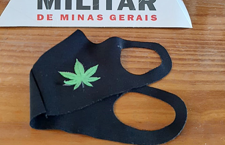 Por volta das 11 horas da manhã desta quarta-feira 31 de março, o cb Augusto e o cb Maxwell quando patrulhavam pela Rua Mário Hugo Ladeira em Rio Novo, abordaram um homem de 27 anos de idade que andava pela via pública utilizando uma máscara de proteção facial preta com uma estampa de “Folha de Maconha”.
