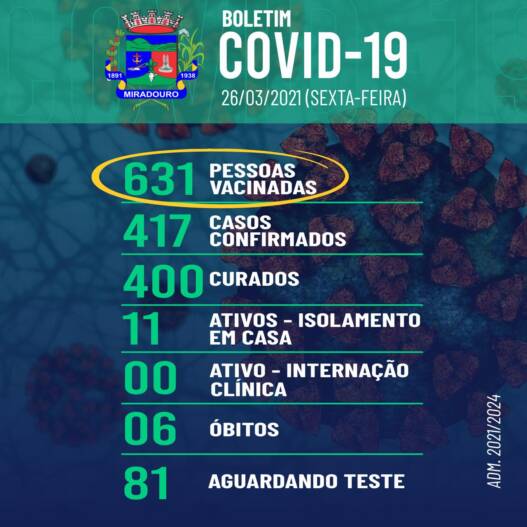 Confira abaixo o boletim epidemiológico, desta sexta-feira (26/03/2021).