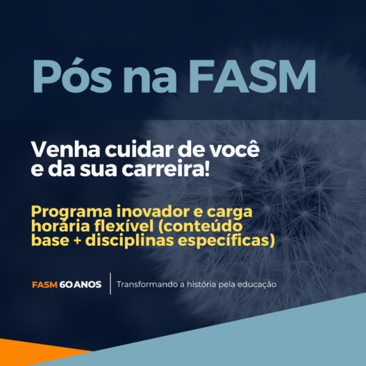 Ensino híbrido, com aulas online (ao vivo) + atividades presenciais. Acesse nosso site fasm.online/posfasm e conheça todos os cursos de Pós Graduação da FASM!