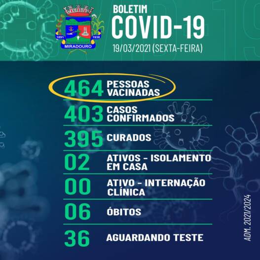 Confira abaixo o boletim epidemiológico, desta sexta-feira (19/03/2021).
