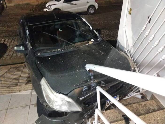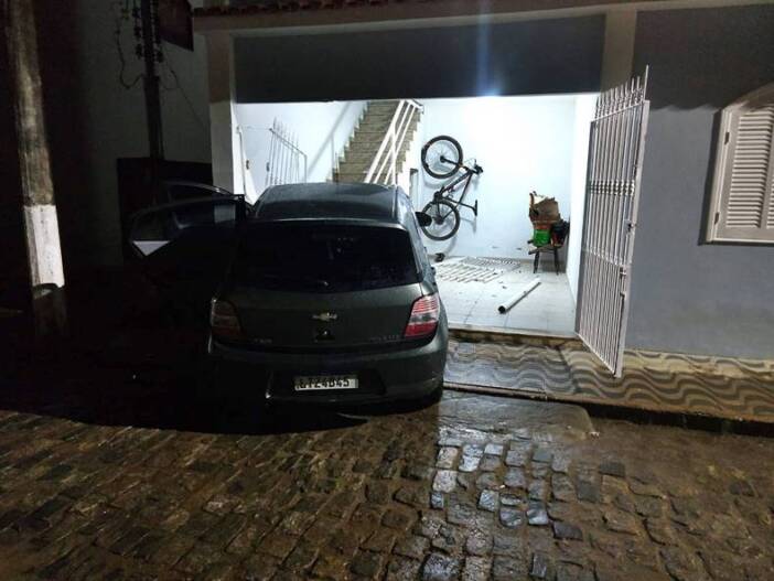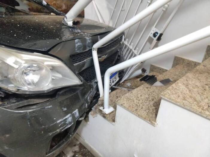 No local uma condutora de 46 anos havia colidido na traseira de um veículo que estava estacionado, e posteriormente ela também colidiu em uma garagem, causando danos no veículo e também no imóvel.