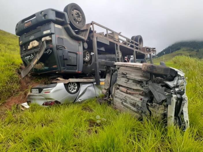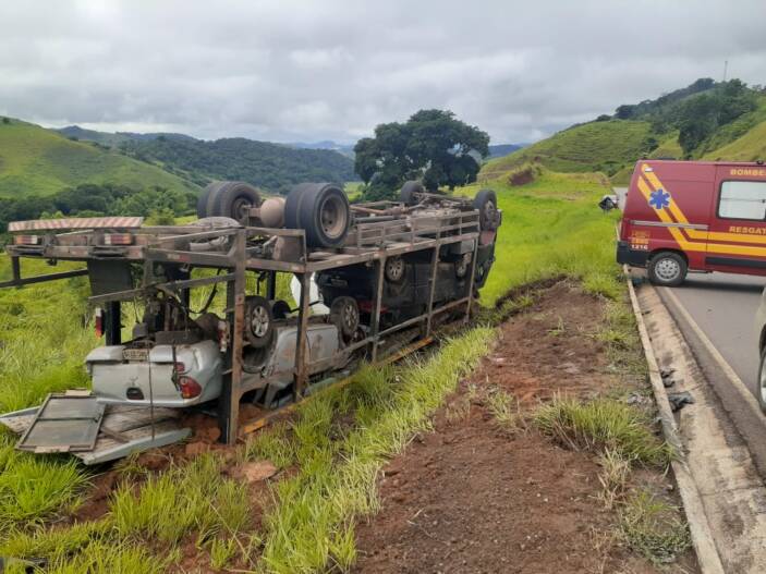 O Corpo de Bombeiros de Muriaé foi acionado para atender a um acidente na Serra de Pirapanema (14 Km de Muriaé), nesta manhã desta terça-feira. No local os socorristas depararam com uma carreta cegonha tombada, o motorista teria perdido o controle da direção em uma curva, possivelmente por problemas nos freios. Vários automóveis que estavam sendo transportados ficaram destruídos, pois muitos foram lançados para fora da carroceria indo parar em ribanceira. O Corpo de Bombeiros informou que o motorista, aparentemente, não teria sofrido ferimentos graves, mas foi encaminhado ao Hospital São Paulo, em Muriaé, para exames mais detalhados.