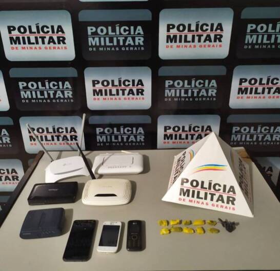 Junto com a droga foram apreendidos 3 aparelhos celulares e 5 aparelhos roteadores de procedência duvidosa.