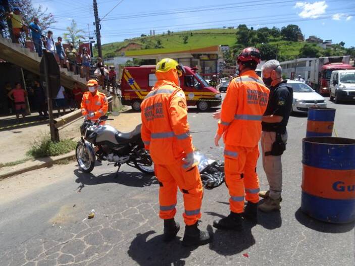 O Corpo de Bombeiros de Muriaé foi acionado com urgência para comparecer na BR-116, na Passarela da Barra, em Muriaé, onde havia ocorrido um acidente gravíssimo. No local os socorristas depararam com um motociclista caído próximo ao veículo e com ferimentos graves, principalmente na cabeça, pois havia sido atingido por uma carreta que trafegava pela rodovia, no sentido Dornelas.