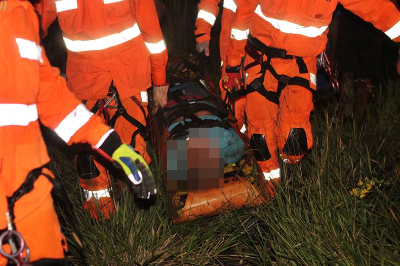Um grave acidente foi registrado na noite dessa quarta-feira (3) entre Miradouro e Vieiras, próximo da antiga piscina de Vieiras. Funcionários da Energisa, foram acionados para uma ocorrência de falta de energia na região, momento em que os mesmos, viram um cabo cortado no meio do pasto, logo à frente viram uma placa de um veículo. A equipe da Energisa que estava no local, acionou a Polícia Militar que compareceu no local e confirmou o fato, sendo acionado o Corpo de Bombeiros de Muriaé. No local os bombeiros usaram a técnica de rapel para descer até onde o veículo estava, em um local de difícil acesso, aproximadamente uns 300 metros de altura. A reportagem do Portal Miradouro acompanhou de perto o belíssimo trabalho do Corpo de Bombeiros de Muriaé, que conseguiu socorrer o senhor identificado como Sebastião Soares de mais ou menos 60 anos. O senhor foi socorrido em estado grave para o Hospital São Paulo de Muriaé.