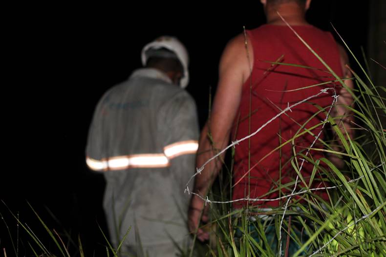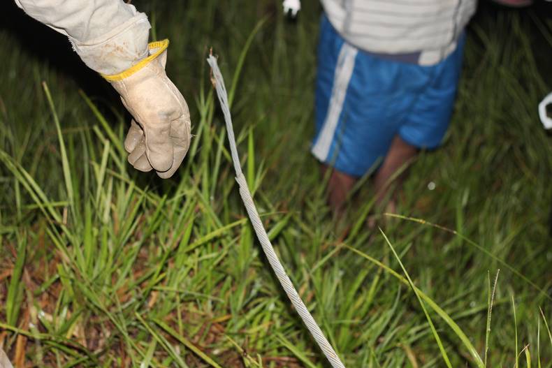 O funcionário mostrou pra equipe o cabo cortado pelo carro