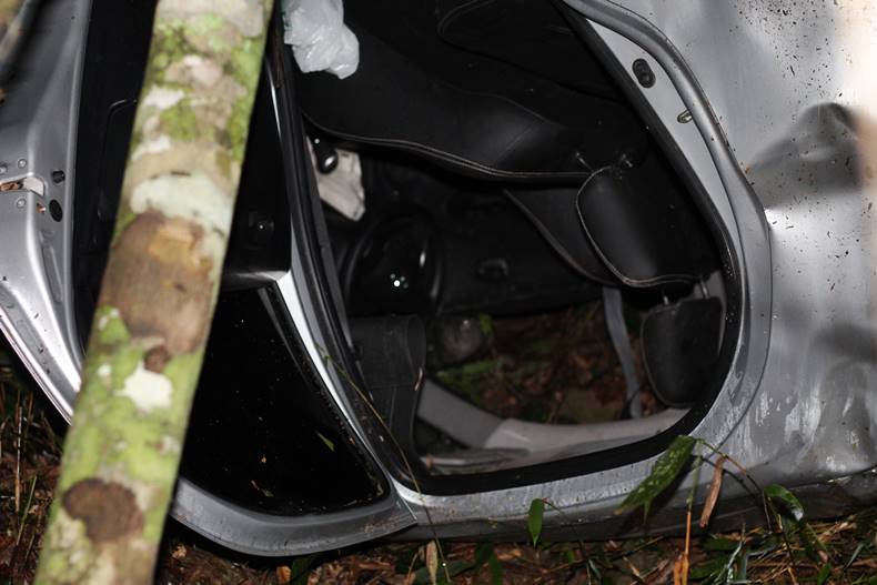 Uma árvore que segurou o carro para não chegar até o Córrego