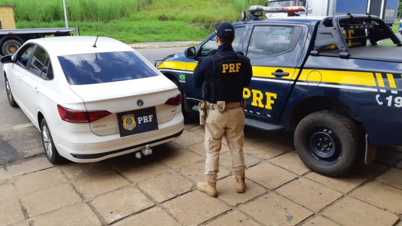 Durante fiscalização de rotina a equipe PRF abordou o veículo VW Virtus de cor branca, tendo como condutor um Sr de 63 anos, quando foram solicitados documentos do veículo e condutor. Após consulta aos sistemas PRF constatou-se haver denúncia registrada pela pessoa que figurava como proprietária, um Boletim de Ocorrência junto à Polícia Civil de Lauro de Freitas (BA), informando que o veículo fora faturado e financiado junto ao Banco Volkswagen, sem o seu conhecimento e consentimento. O condutor não forneceu informações consistentes quanto à compra e forma de pagamento do veículo. Diante dos fatos o veículo e condutor foram encaminhados à Polícia Civil de Leopoldina.