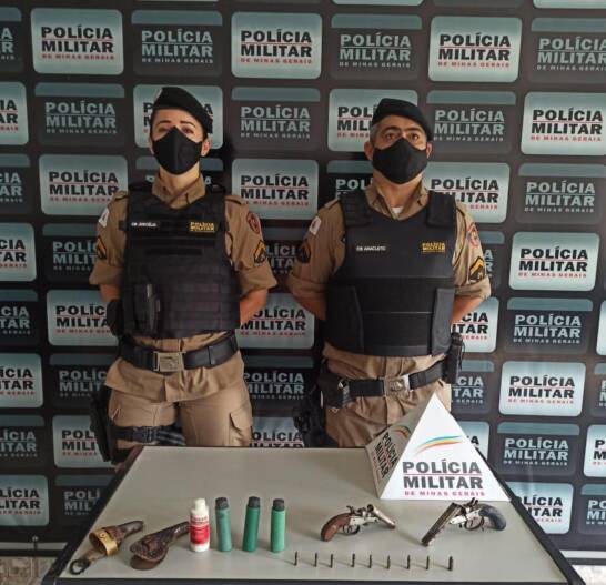 Foi realizada diligência até o local e constatado que haviam 02 garruchas de dois canos, sendo uma cal. 22 e a outra cal. 320.