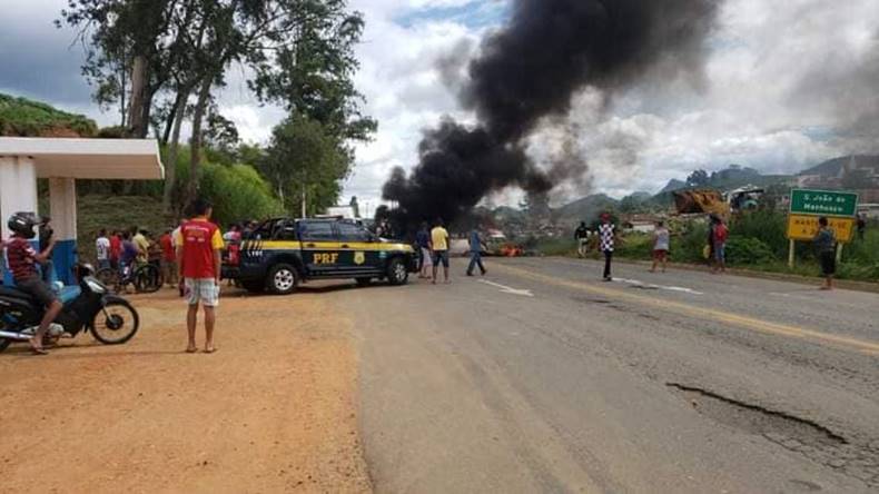MORADORES FECHAM A BR 116 NA TARDE DESSE SÁBADO (27), EM PROTESTO PELA MÁ CONSERVAÇÃO DA RODOVIA E PELO ALTO PREÇO DO COMBUSTÍVEL