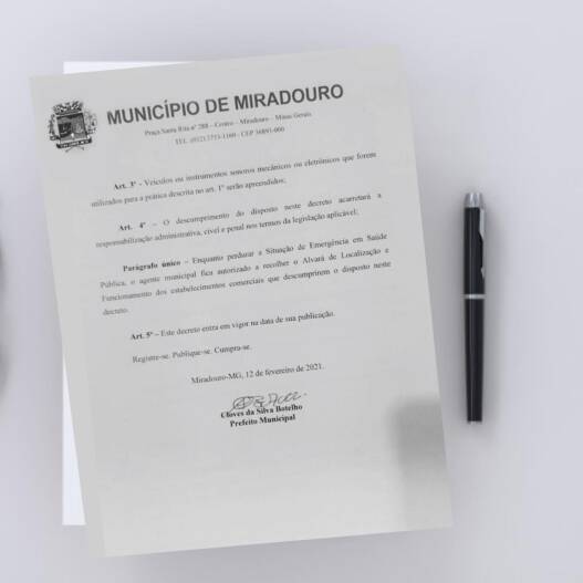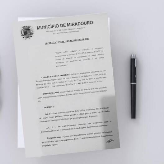 No final do dia, a Prefeitura Municipal de Miradouro publicou o Decreto Nº 070/2021, que regulamenta as atividades durante o período de Carnaval em todo o município. Confira abaixo o Decreto em sua íntegra.