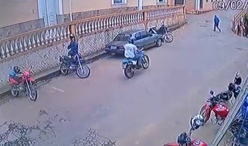 Vejam abaixo o momento da colisão entre o motociclista e o pedestre: