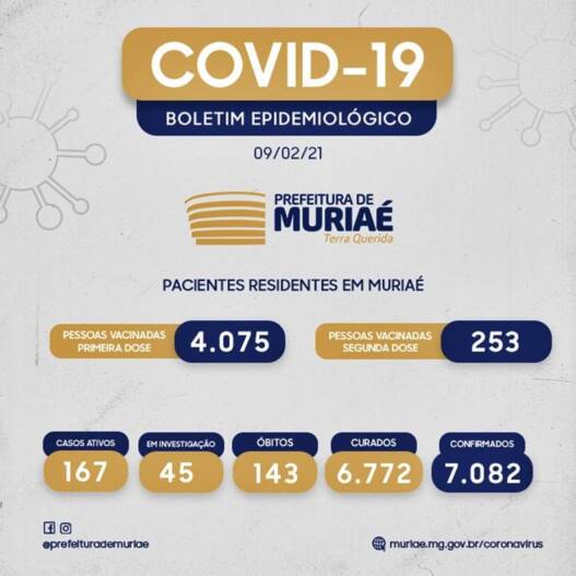 MURIAÉ REGISTRA NOVA MORTE POR COVID-19; VÍTIMA ERA JOVEM E NÃO TINHA COMORBIDADES