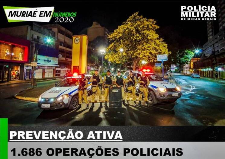 A Polícia Militar realizou o total de 1.686 operações policiais na cidade, realizadas com planejamento e inteligência, sempre em locais e horários estratégicos, onde exige maior demanda e atenção da nossa Instituição. Reduzimos em 18,7% os furtos ocorridos em Muriaé e ainda em 38,9% no número de roubos. Diminuir a violência é a nossa meta, no período apresentado, foram apreendidas o total de 309 armas de fogo, armas estas que poderiam gerar um grande mal a nossa sociedade.