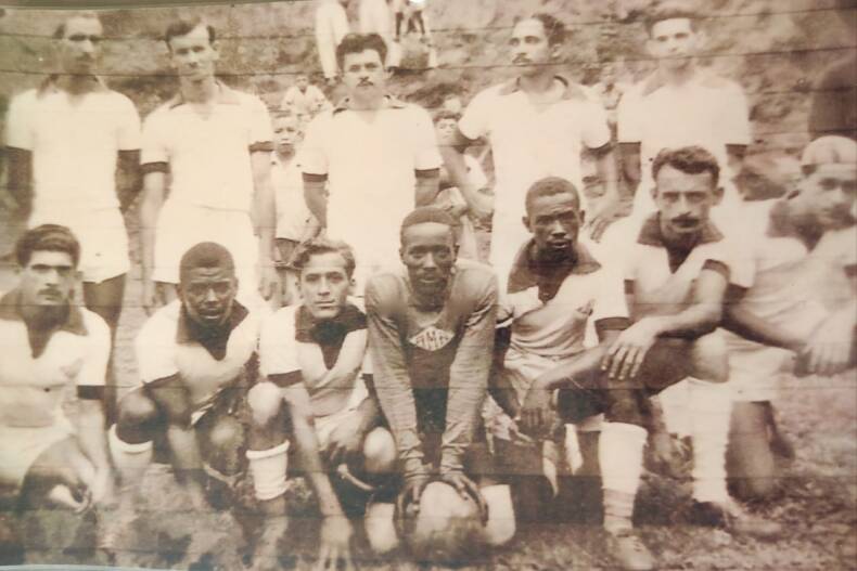 Em pé, da esquerda para a direita: ZÉ AMARAL, BECA, FIRMINO ROCHA, SEBASTIÃO BISPO E TATAIA MOREIRA / Agachados, da esquerda para a direita: JÉSUS MOREIRA, CHICÃO, NILO, FREDERICO, LIQUINHA, DOMINGOS FERRAREZ E TÃOZINHO.