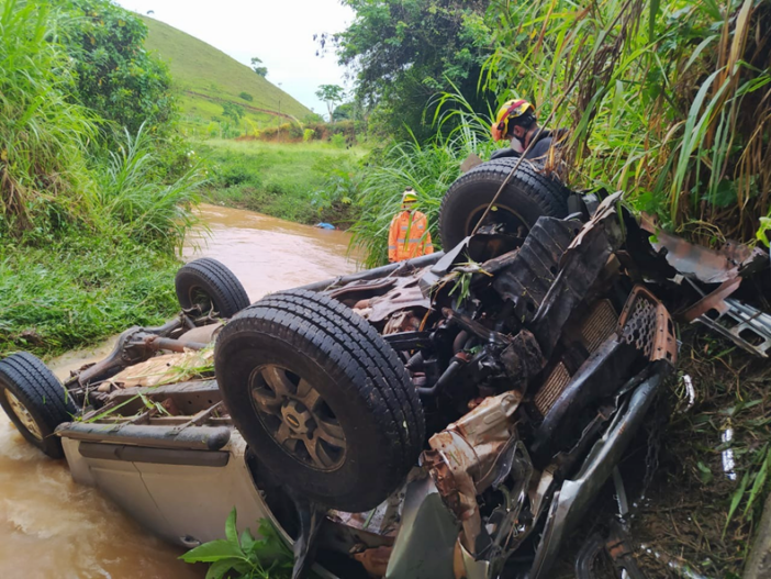 A caminhonete estava com sua parte traseira submersa nas águas de do Ribeirão, que no momento apresentava forte correnteza. No interior da caminhonete, estava uma vítima sem sinais vitais e não respondia a qualquer estimulo.